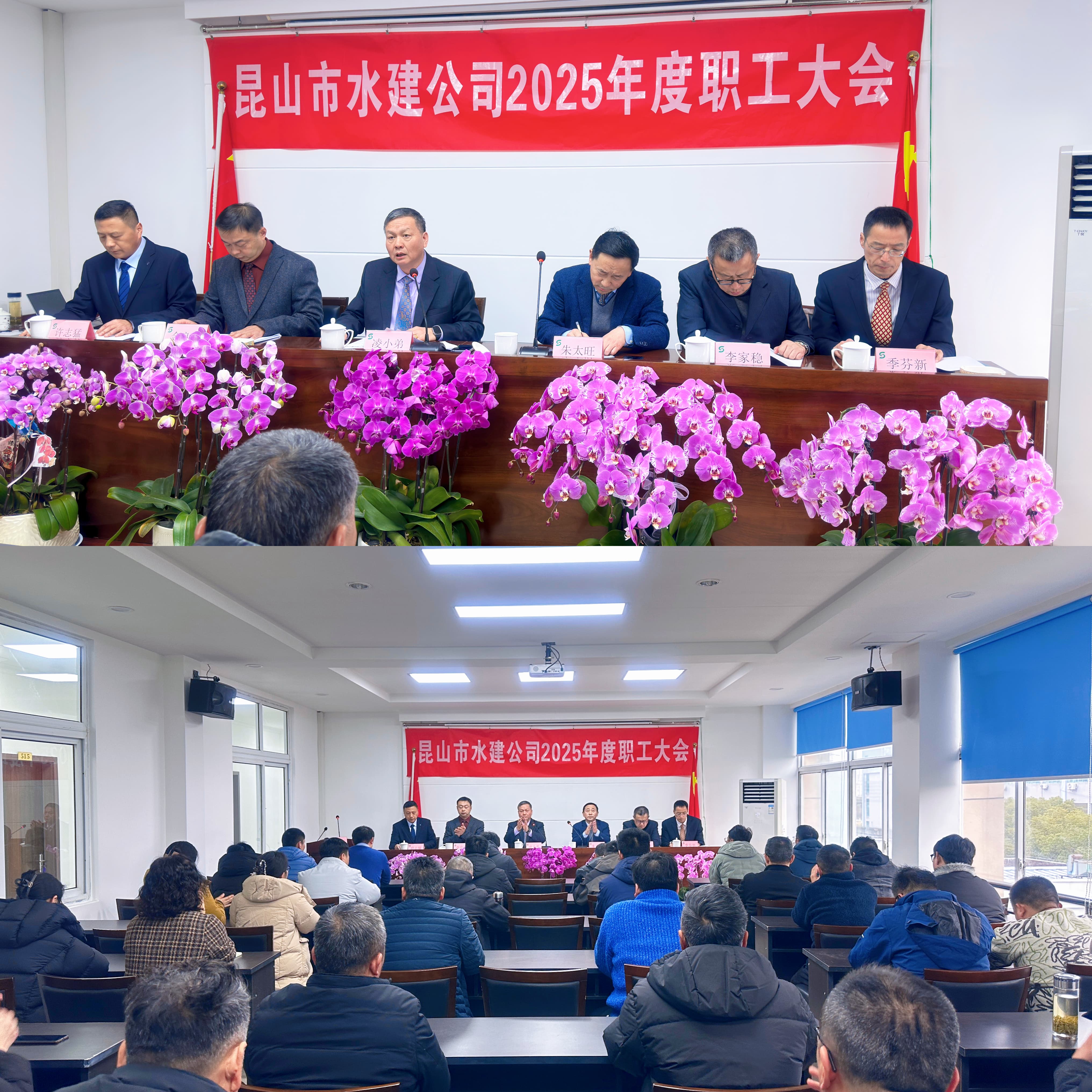昆山水建公司2025年度总结与表彰大会于2月6日顺利召开,会上,董事长凌小弟先生首先宣布了公司新一届人事任命及工作分工,随后,总经理朱太旺先生宣布了对先进个人进行表彰的决定并进行代表交流发言。与员工分享工作心得与成长历程,讲述面对困难时的突破和团队协作的成果,发言情真意切。最后董事长做了年度总结,回顾了过去一年公司的工作情况,也剖析了当前面临的挑战与机遇,为公司2026年度的稳步发展指明方向。